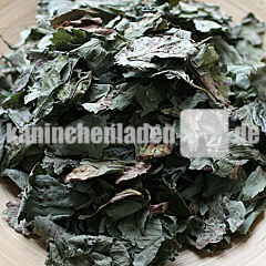 Getrocknete Blätter von Obstbäumen, Haselnuss, Weide, Birke, Obststräuchern und viele andere, stellen in der artgerechten Ernährung von Kaninchen eine ideale und bereichernde Abwechslung dar. Blätter können frisch und getrocknet jeden Tag gegeben werden.